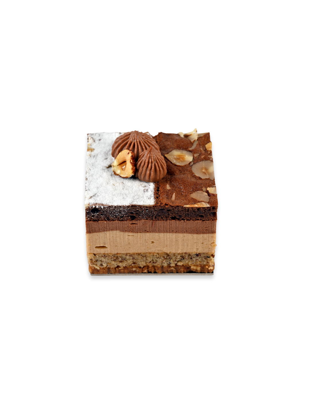 Crémeux exquis aux noisettes, chocolat Noir Grand Cru 66% cacao et croustillant praliné feuilleté