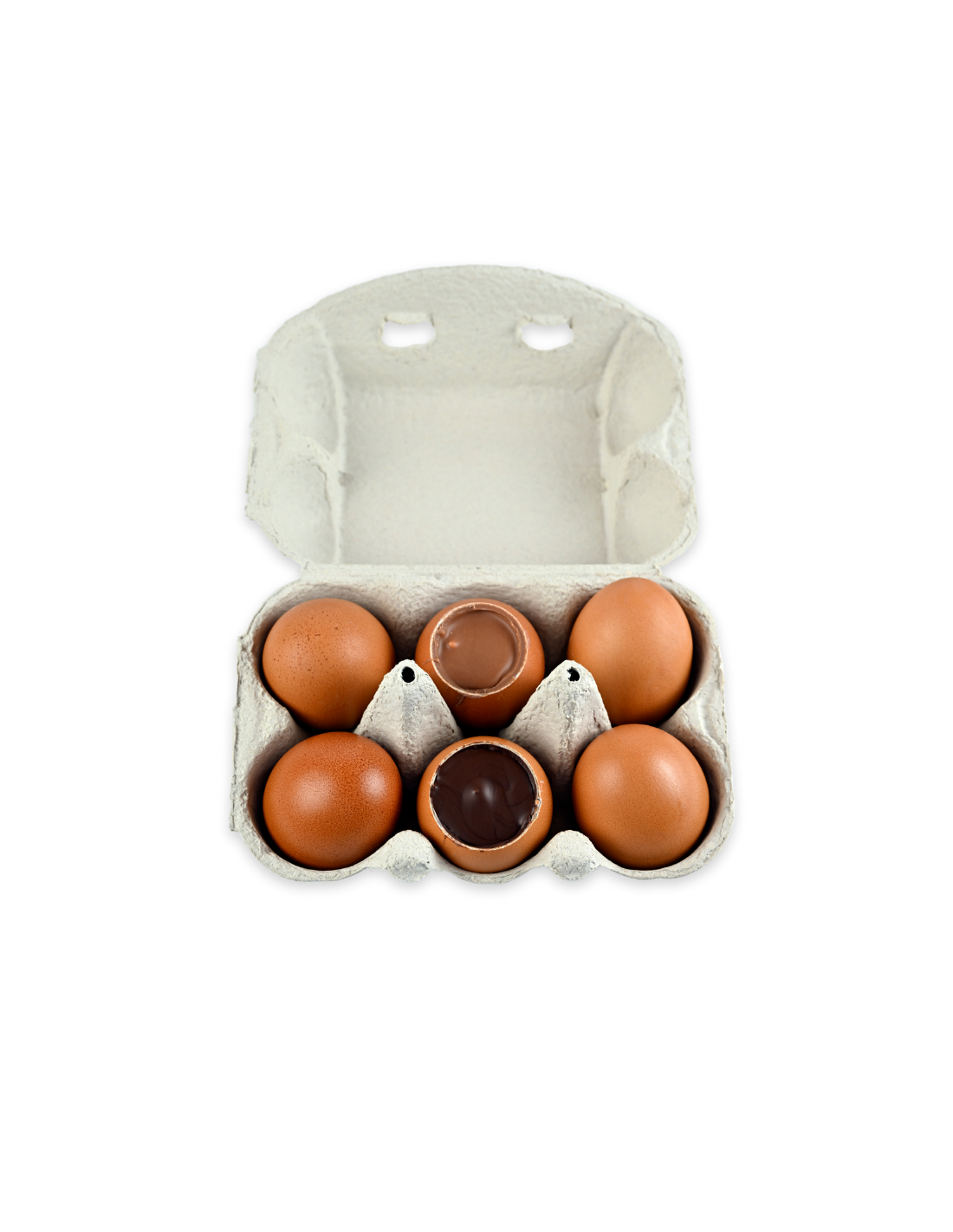 Boîte de 6 œufs guimauve, enrobés de chocolat noir et lait, dans leur (vraie) coquille !