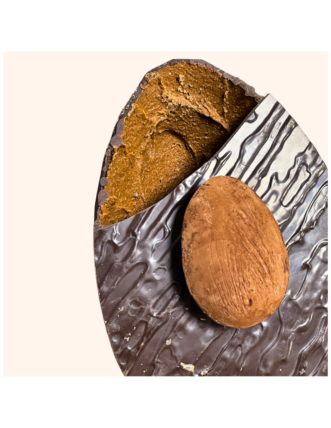 Œuf extra gourmand au chocolat noir, avec une coque remplie de praliné